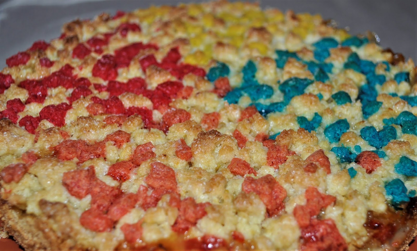 Non è invitante? Le torte alle mele sono la mia passione ma in estate certo non rappresentano il dolce più adatto, sostituite da gelati, mousse, granite e affini. Per renderla un po’ più colorata, come l’estate appunto, l’ho voluta impreziosire con un craquelin multicolor. Giuro che è l’ultima per adesso, tornerò ad elaborarne altre in autunno, promesso!