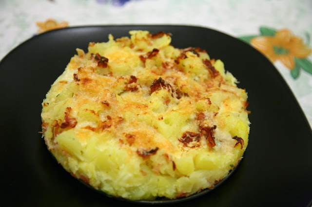 Io che sono golosa di patate ho cenato con questo piatto, ma degli straccetti marinati o un bel roastbeef sarebbero stati l’ideale. È stato diviso in due.
