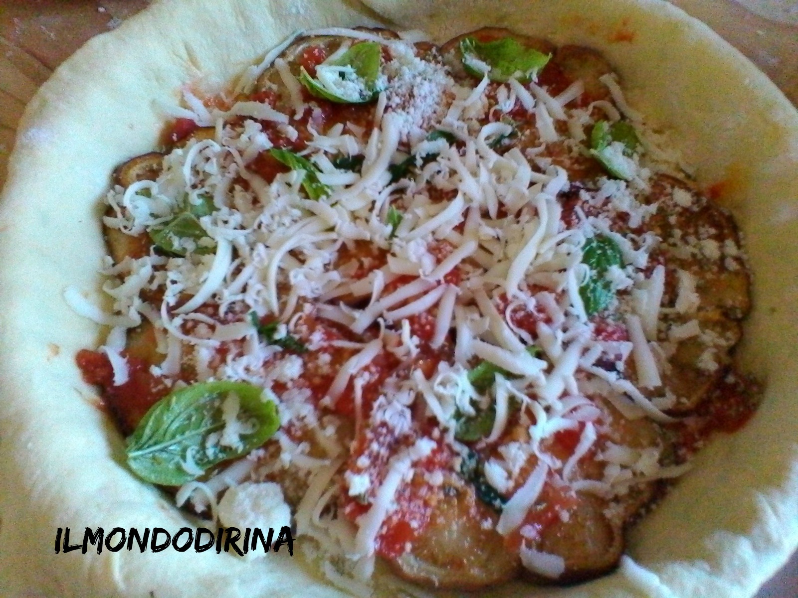 Stendete il panetto in una sfoglia non molto sottile, con una parte rivestite la tortiera. Quindi versate un pò di sugo, del pecorino grattugiato, le melanzane e altro sugo. Coprite con fette di provola, basilico e pecorino grattugiato. Proseguite alla stesso modo con  un secondo strato.
