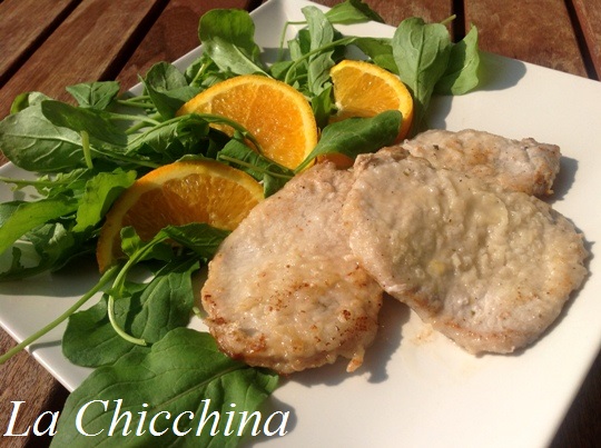 Preparazione: passare le fettine di arista/lonza nella farina. Scaldare un tegame e mettervi il burro e l’olio: aggiungere dunque le fettine di lonza, salare, pepare e far cuocere 3/4 minuti per lato.