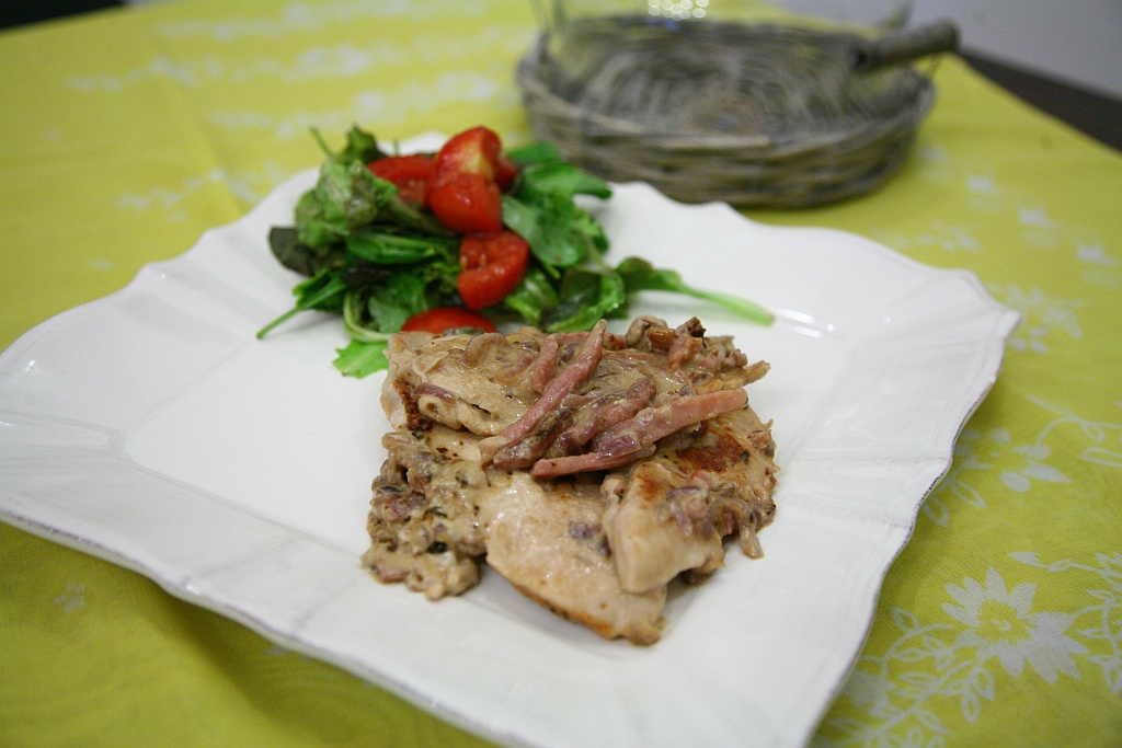 Oggi vi propongo delle scaloppine gustose e cremose, ma al posto della classica panna è stato utilizzato lo yogurt greco che non solo è un po’ più light ma dona un filo di acidulo che si sposa perfettamente con l’affumicatura dello speck e la dolcezza della cipolla di Tropea che completa la ricetta.
