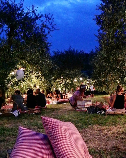 Ma la cosa che vi lascerà senza fiato saranno i tantissimi cestini da pic-nic con palloncino bianco annesso che vi inviteranno a recarvi al vostro ulivo e a sedervi su di una coperta bianca stesa a terra.