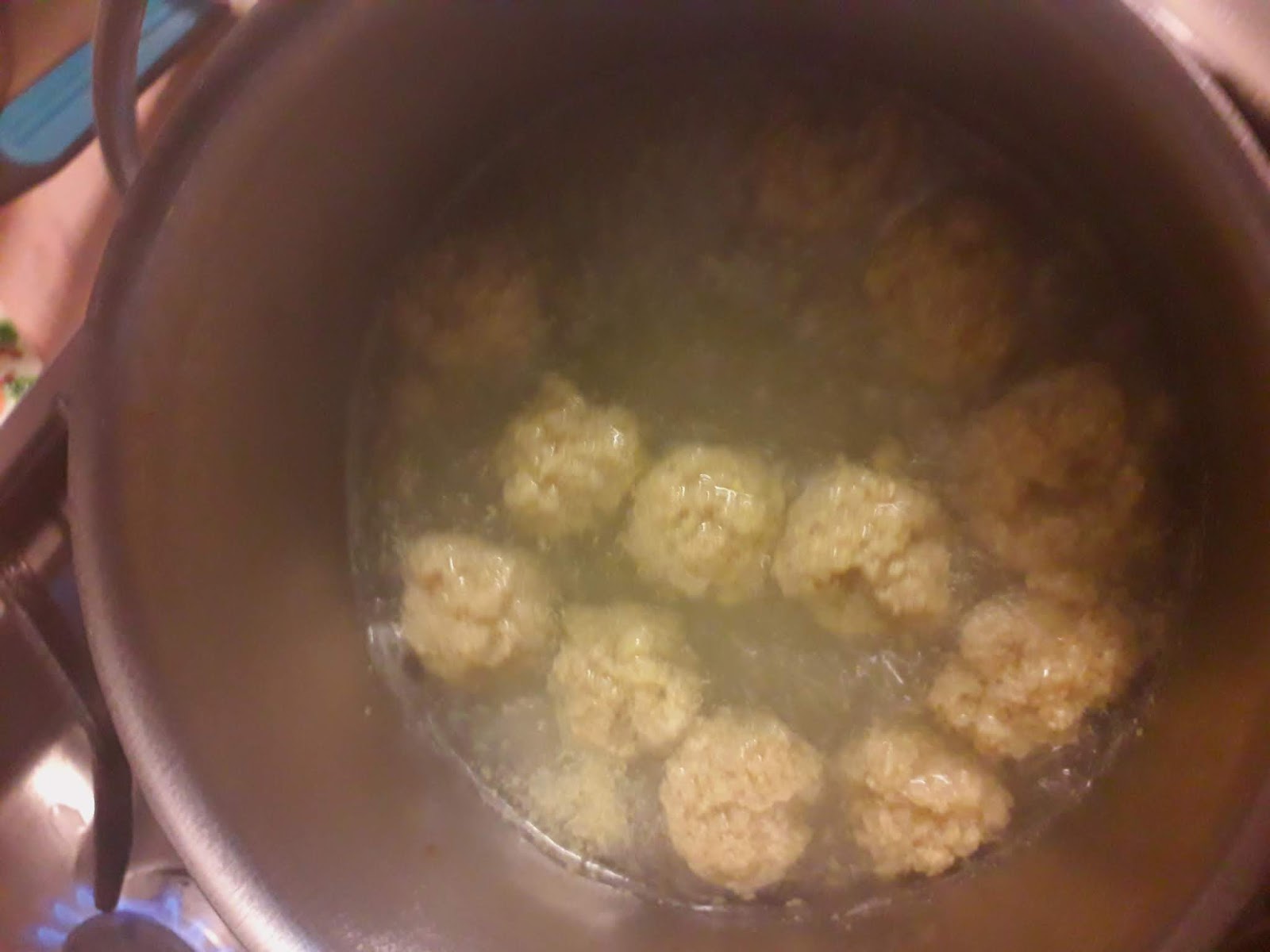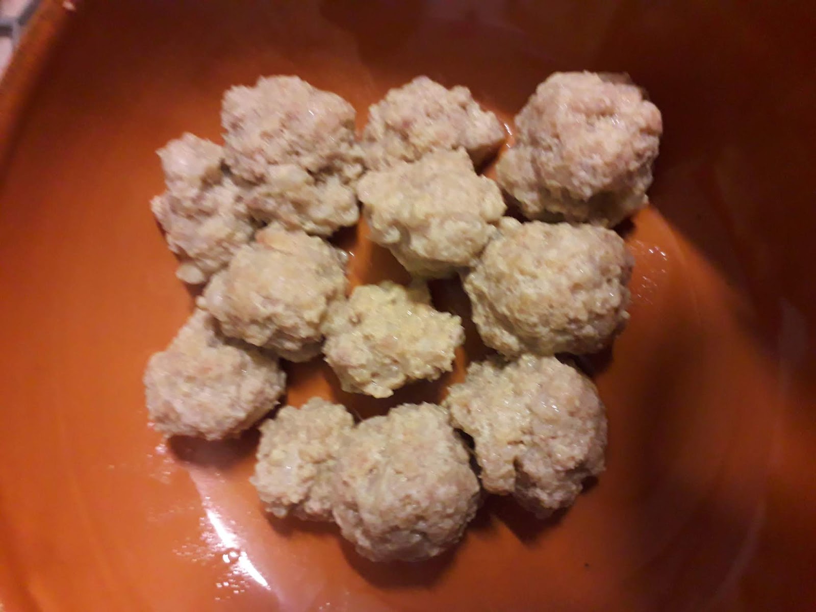 Formare le polpettine,mescolando carne,pane strizzato,grana ,gomasio e zenzero..