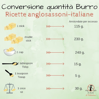 i grammi per il burro, utilizzavano lo stick e la tazza. Stufa di cercare ogni volta su google la conversione di queste misure, ho creato una scheda promemoria, la condivido volentieri con voi.