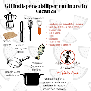 Tempo fa vi avevo preparato una schede per gli indispensabili in cucina, ovvero gli utensili base per non fallire cucinando. Visto che sabato prossimo partirò finalmente per le vacanze, voglio condividere con voi i miei indispensabili per cucinare anche fuori casa. Scheda valida per vacanze in un alloggio in affitto, in un bungalow attrezzato, o come nel mio caso in uno chalet.