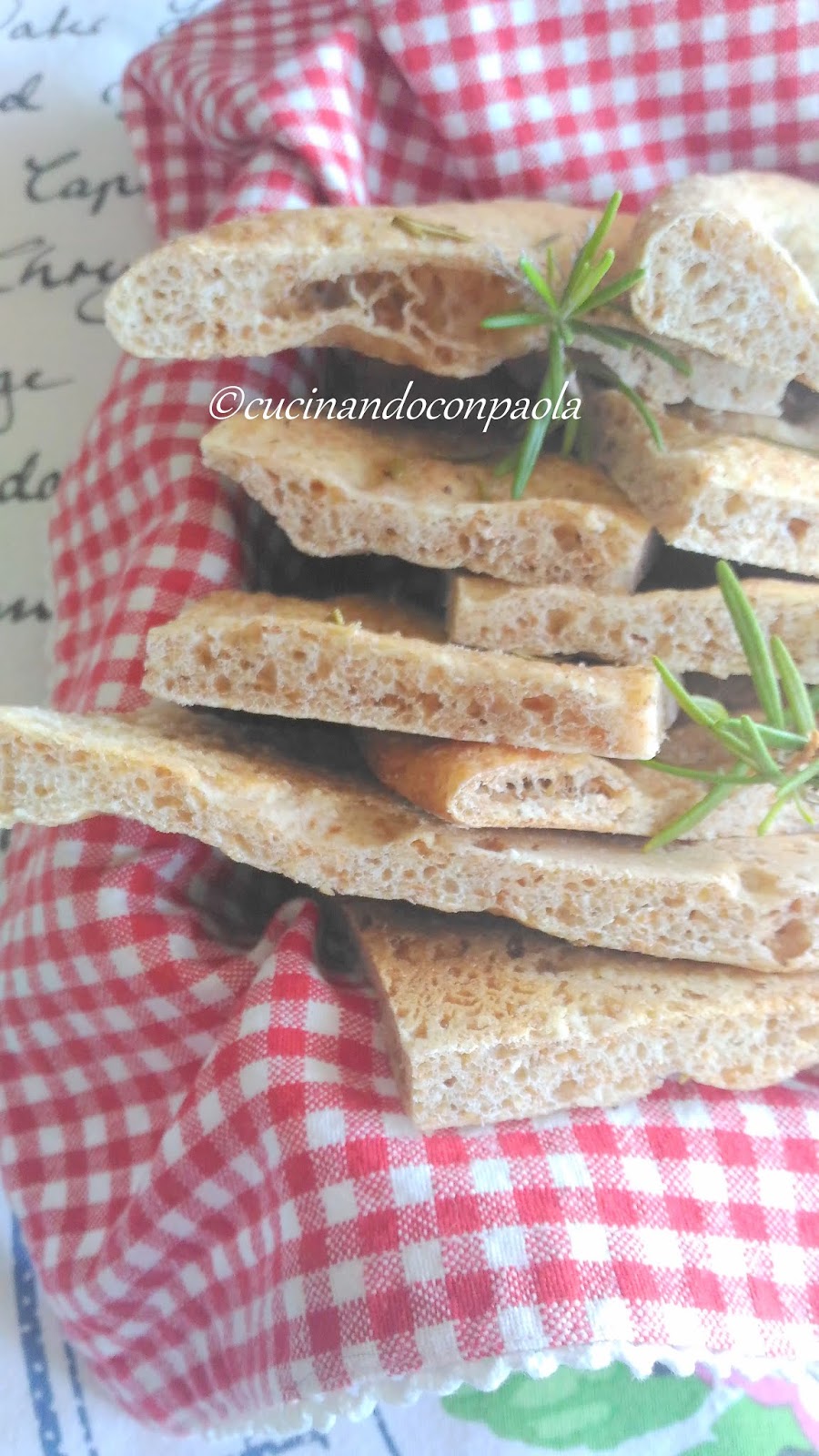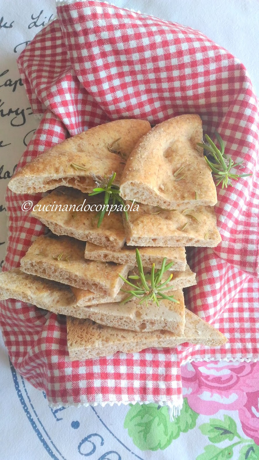 Versare 300 ml di acqua tiepida in una terrina. Versare il contenuto della confezione e lasciare riposare acqua e preparato, così come sono, per almeno 5 minuti. Unire il rosmarino tritato a mano. Impastare energicamente a mano per 10 minuti. Se l’impasto appiccica lavare e oliare le mani. Formate delle pagnottine e lasciar lievitare per 120-180 minuti su una teglia, precedentemente oliata, all’interno del forno spento. Una volta lievitato sgonfiate l’impasto e formate le schiacciate. Disponetele su due teglie unte e infarinate, spennellate d’olio in superficie e cospargete con il sale fino. Infornate nel forno preriscaldato a 220°C per 20-30 minuti circa.