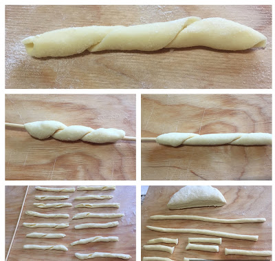 Stavolta ho preferito farla con le scilatelle, che in Calabria sono anche chiamate maccaruni cu ferru, fileia, strangugliaprieviti, firrazzul, scialatelli, a seconda del luogo di provenienza. Anticamente per arrotolare la pasta si usava il gambo della spiga del saracchio o disa, un arbusto che cresce nei terreni argillosi, successivamente vennero usati ferri da calza o ferretti di qualche ombrello rotto. Io uso uno spiedino di legno. Vi ricordo che il ferretto veniva dato in dote alle spose in quanto una brava moglie doveva saper fare almeno 12 tipi di pasta (?).