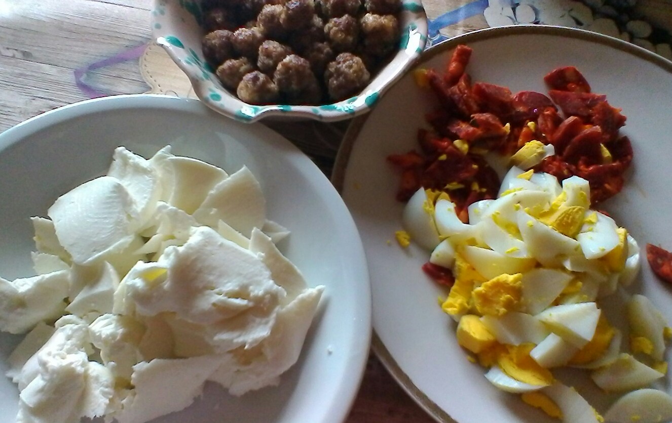 - Scamorza, soppressata calabrese, parmigiano grattugiato, uova sode