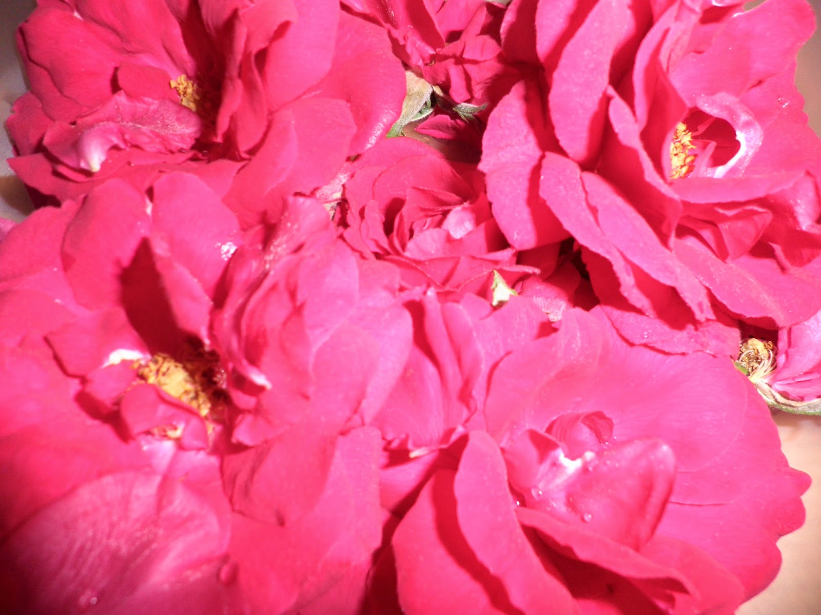 Eccole le mie rose rosse: in verità sono in minoranza nel mio giardino, rispetto ad altri colori. Taglio le corolle di prima mattina.