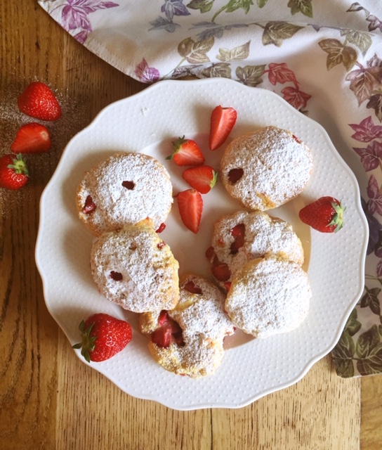 Mio figlio ha visto la foto di questi scones su una rivista che avevo in casa, ama follemente le fragole e mi ha chiesto di prepararglieli!