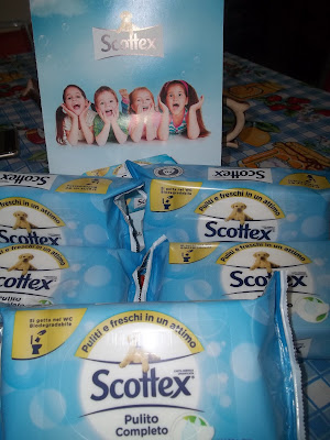 Nella box ho trovato 5 pacchi di Scottex Pulito Completo carta igienica; due confezione per me e tre per le mie collaboratrici tutte da 42 salviette.