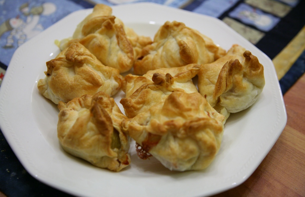 Prendere un rotolo di sfoglia e dividerli in 8 parti.