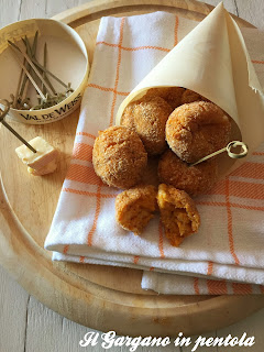 Oggi ve la propongo sotto forma di polpette arricchite con un cuore di formaggio Camembert che dona quel pizzico di sapore forte che si sposa benissimo con la dolcezza della zucca.