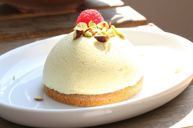 Togliete gli stampi monoporzioni e adagiateli sui biscotti e decorate con pistacchi.