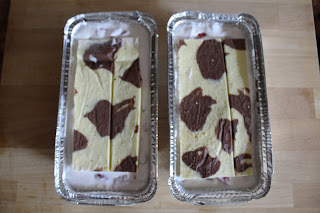 Con un cucchiaino prendere un po’ di impasto al cioccolato e formare sulla teglia dei disegni irregolari, distanziati fra di loro. A questo punto versare l’impasto alla vaniglia a coprire interamente la superficie della teglia. livellare con una spatola angolata e infornare per una decina di minuti, controllando di tanto in tanto per evitare che si colori troppo e che l’impasto si indurisca.