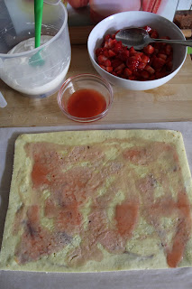 Scolare le fragole e con il succo inzuppare leggermente la pasta biscotto.
