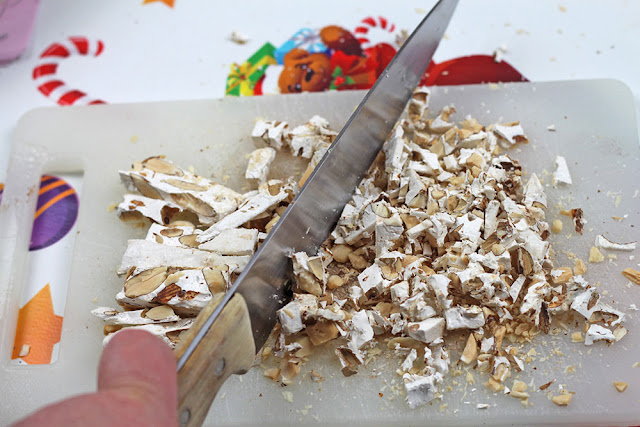 Usate il mixer per macinare bene i torroncini, ma se vi piace l’idea di trovare pezzi grossolani sotto i denti, allora tagliateli a coltello.