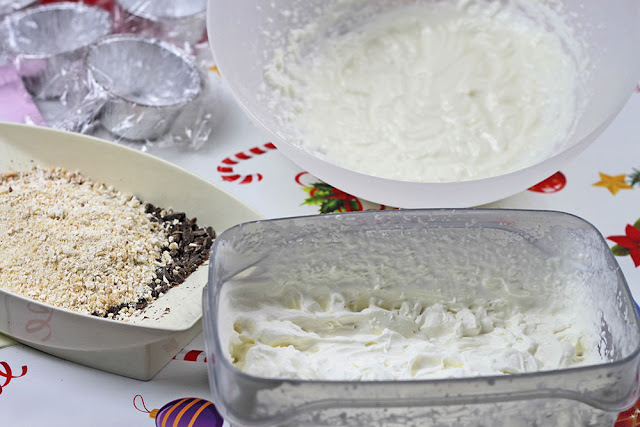 Vi consigliamo di ricoprire gli stampini con della pellicola perché faciliterà il distacco del dolce una volta refrigerato.