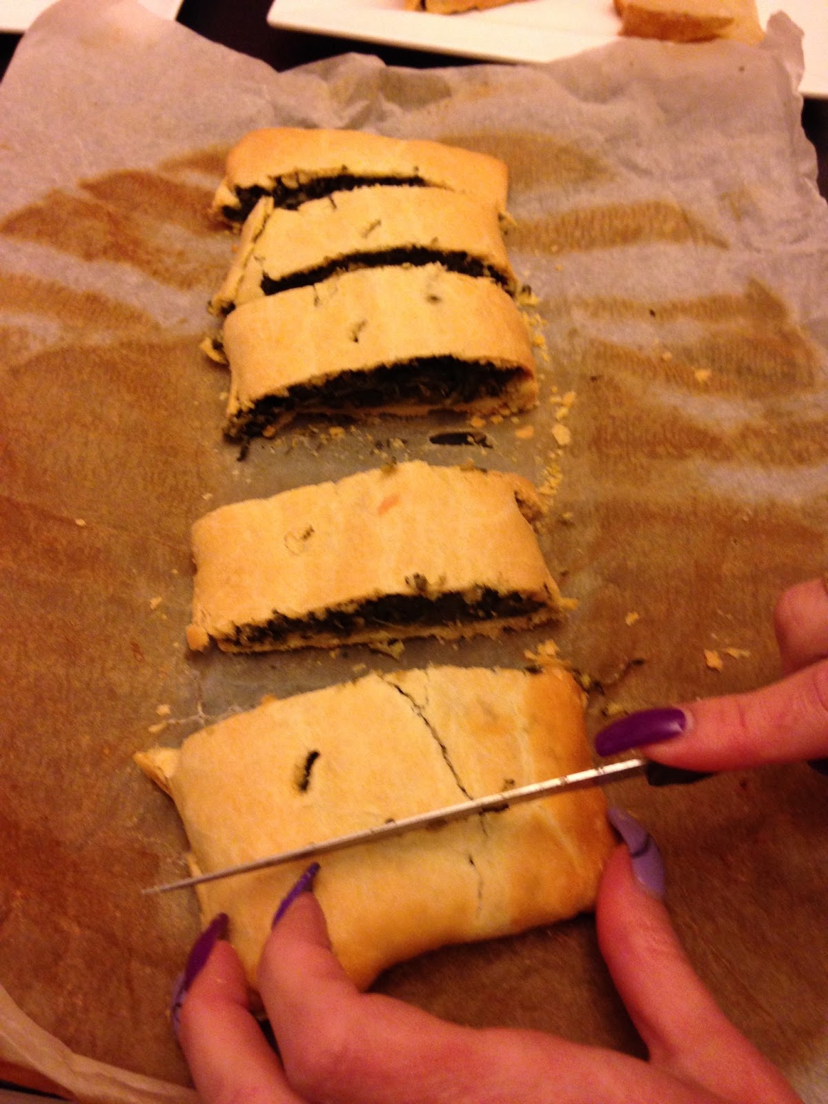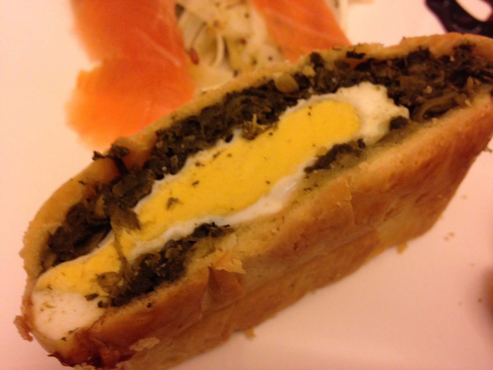 Appassire un po’ gli spinaci in pentola. Aprire il rotolo di pasta brisè, adagiare gli spinaci al centro, sopra rompere 3 uova. Cuocere in forno a 180° per 30 minuti circa. Tagliarlo a fette e presentarlo capovolto, in modo che si vedano gli ingredienti.