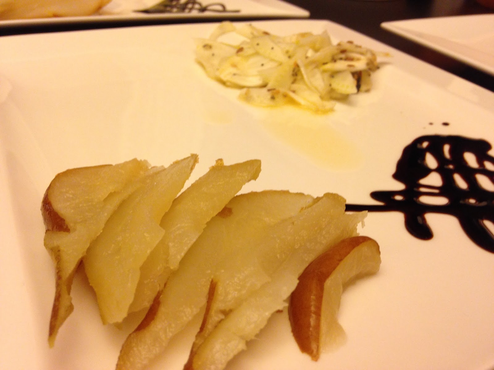Cuocere le pere al vapore. Tagliarle a fettine e metterle in piatto, accanto ad un po’ di crema all’aceto balsamico alla fragola.