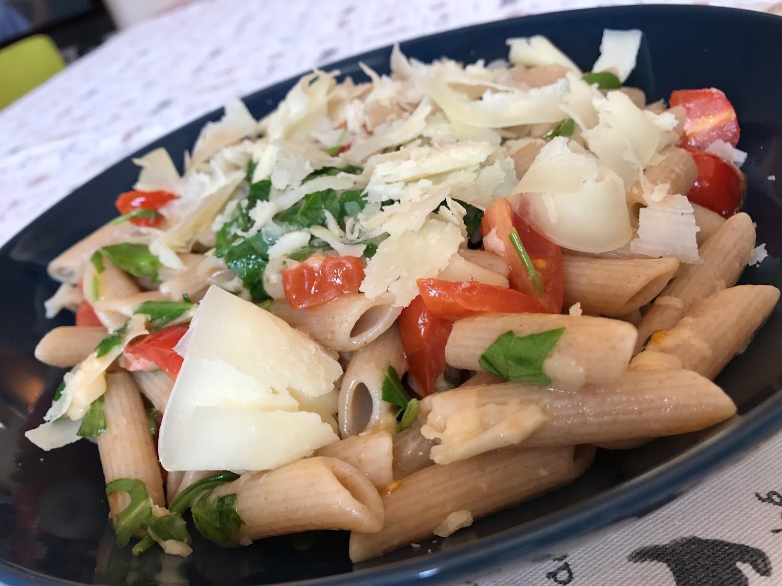 Sminuzzare la rucola. Tagliare i pomodorini piccoli. Cuocere la pasta per il tempo indicato nella confezione. Scolare la pasta e buttarla nella ciotola con il condimento. Servire con un filo d’olio a crudo e Shoyu se piace. Metterci sopra il Parmigiano Reggiano a Scaglie o la Raspadura Bella Lodi come abbiamo fatto noi.