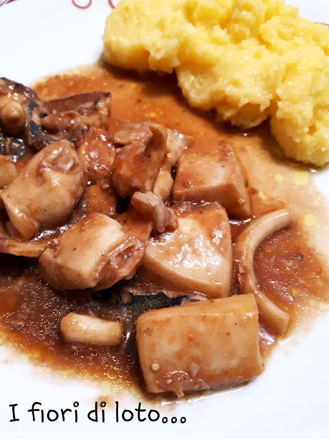 Le seppie in umido a Venezia sono dette anche “in tocio”, perché la parte più gustosa di questo piatto è proprio il sughetto, quindi è d’obbligo la scarpetta con il pane o la polenta.