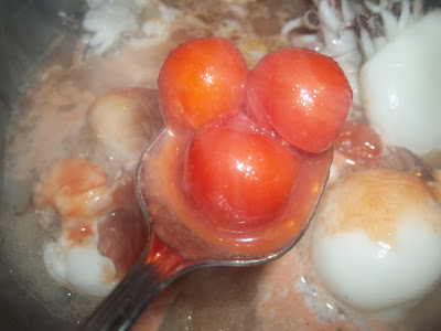 Quando saranno rosolate aggiungete i pomodori, un bicchiere di acqua e salate.