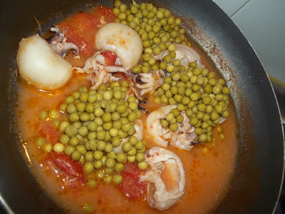 Fatele cuocere e a metà cottura aggiungete i piselli, io ho utilizzato quelli nel barattolo di vetro, fate insaporire il tutto.