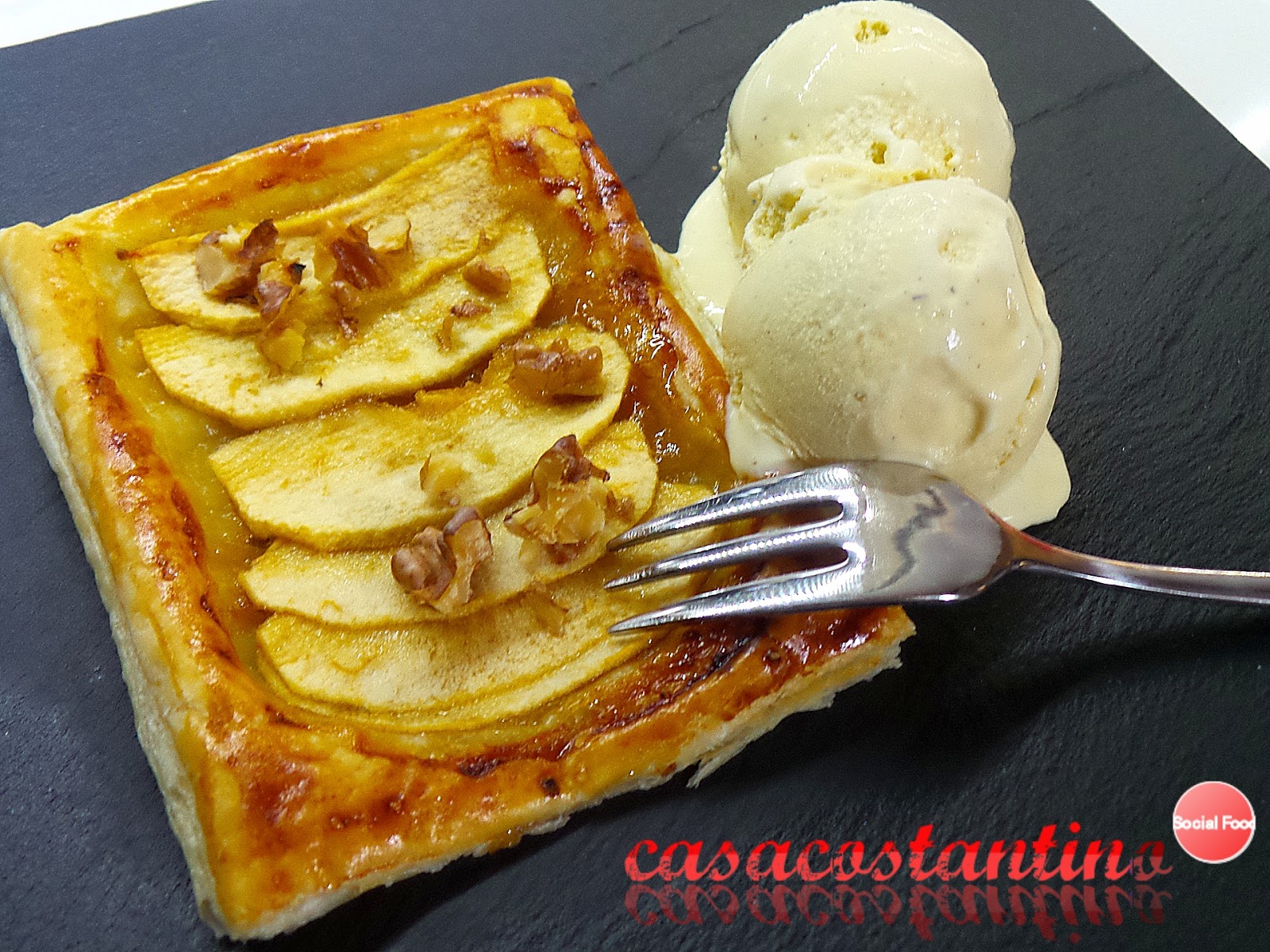 Ferie ed impegni mi hanno tenuto lontano dai fornelli e lo faranno ancora per un po’ ma basta avere un attimo di tempo ed un’irrefrenabile voglia di dolce, che ecco spuntare un piatto goloso e fresco per via dello squisito abbinamento con del golosissimo gelato alla vaniglia! La sfoglia alle mele è ottima anche da sola ovviamente e va benissimo per un’appagante colazione accompagnata da un caffè. Allora rimbocchiamoci le maniche ed iniziamo a preparare la nostra sfoglia.