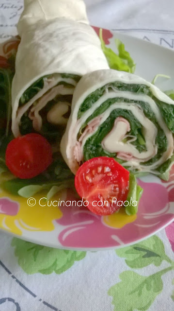 Stendete la sfoglia di mozzarella e cospargete con la verdura, salate e disponete le fette di prosciutto cotto. Arrotolatelo ben stretto e chiudetelo con la pellicola trasparente.