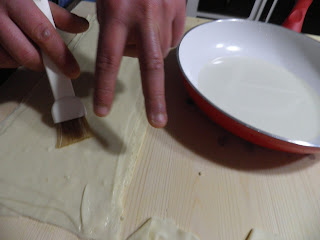Ungete la prima sfoglia con lo strutto servendovi di un pennello.
