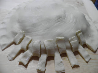 Spalmate la superficie con l’uovo sbattuto e infornate a 180° per 30 minuti.