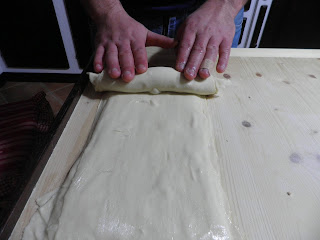 Arrotolate ora gli strati come vedete nella foto fino a formare un cilindro.