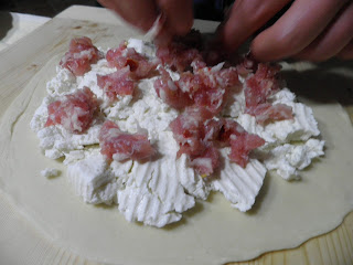 Sistemate all’interno di due dischi prima la ricotta e dopo la salsiccia sbriciolata.