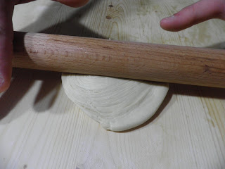 Spianate con il mattarello ogni girella fino ad ottenere dei dischi.