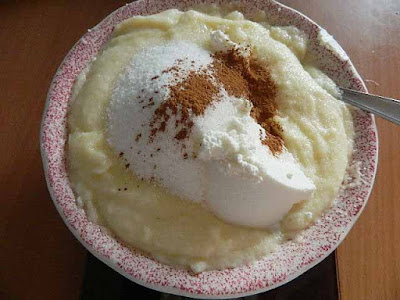poi la ricotta, lo zucchero, cannella e vaniglia,