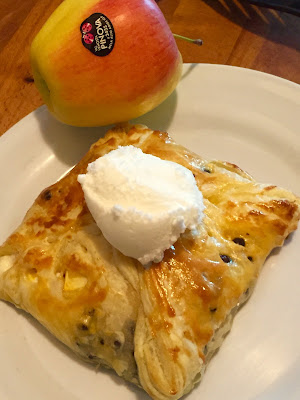 3. Su ognuno dei due rettangoli distribuite la crema di ricotta (ottenuta mescolando la ricotta con lo zucchero a velo) e adagiatevi sopra le mele.