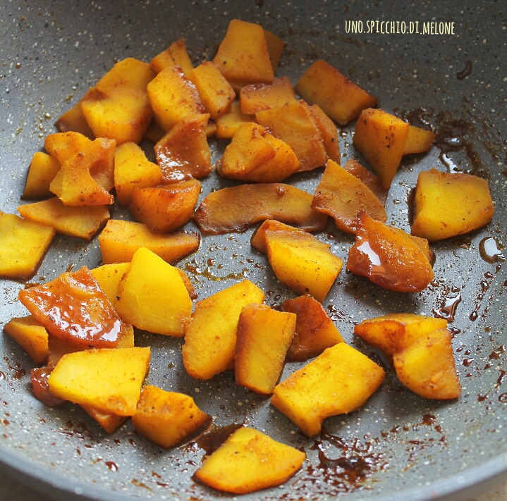 Lasciate, dunque, le mele in cottura per 15-20 minuti ricordandovi di andarle a girare spesso. Spegnete il fuoco appena vedere che la mela si è “appassita”, ma non sciolta. La mela dovrà essere morbida, ma allo stesso tempo consistente.