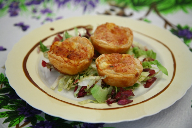 Impastare gli avanzi di pasta sfoglia e stenderla per ottenere altri dischetti (si fa un po’ più fatica poiché diventa più elastica).