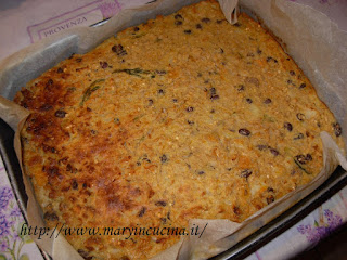 Avevo precedentemente cucinato dell’avena con zucca, cavolfiori e fagioli azuki, ma ne ho preparata troppa e non avevo più voglia di rimangiarla così com’era allora ho mescolato la farina di ceci con l’acqua, aggiunto poco sale e versato in una scodella con l’avena. Versato un filo d’olio su una teglia con cartaforno e versato il composto dopo averlo amalgamato bene. Ho livellato un po’ lo sformato ed infornato a 220° per 30 minuti.