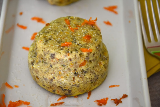 - A questo punto possiamo decidere di servire gli sformati con una salsa d’accompagnamento (esempio una salsa allo yogurt, una panna acida, …) oppure di gustarli così come sono. Io li ho semplicemente serviti con una spolverata di parmigiano e un pò di carota cruda grattugiata. La consistenza era morbida e molto idratata, come piace a me, pertanto a mio avviso si poteva degustare perfettamente così senza bisogno di salse, olio o altri grassi, ma come sempre dipende tutto dal vostro gusto personale.
