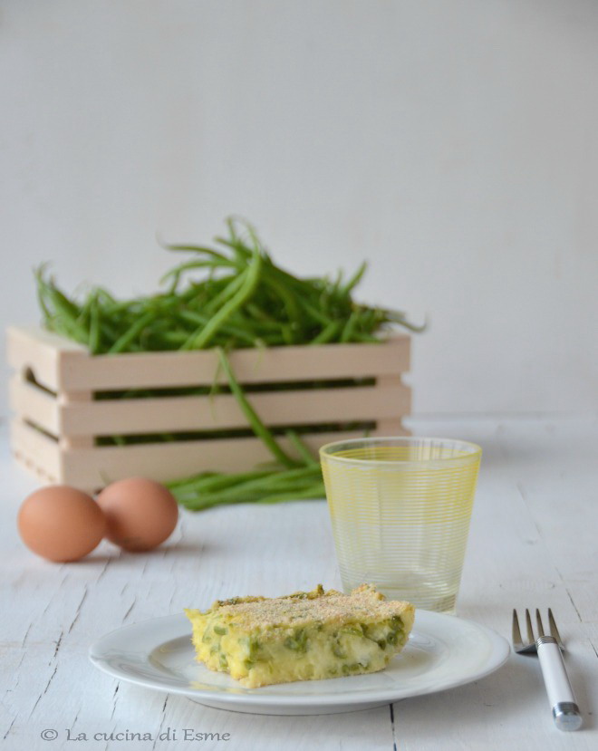 Per prima cosa mettete a lessare le patate. Nel frattempo pulite i fagiolini e lessateli per pochi minuti in acqua bollente salata. Non appena i fagiolini sranno pronti scolateli e metteteli a raffreddare. Appena le patate saranno cotte, sbucciatele, passatele allo schiacciapatate e mettetele in una ciotola. Unite le uova, il parmigiano grattuggiato e mescolate, poi unite la scamorza tagliata a dadini, aggiustate di sale e in ultimo aggiungete i fagiolini tagliati a pezzetti. Mescolate bene il composto che dovrà risultare sodo, ma non troppo duro eventualmente aggiungere un pochino di latte. Imburrate una pirofila, cospargetela con un leggero strato di pangrattato, scuotetela per toglierne l’eccesso, mettete il composto nella pirofila, livellando bene la superficie con una spatola, cospargete con del pangrattato e qualche fiocchetto di burro. Infornate a 180° per circa 30 minuti. Sfornate e prima di servire lasciate riposare lo sdormato 5 minuti. Ottimo sia caldo che tiepido.