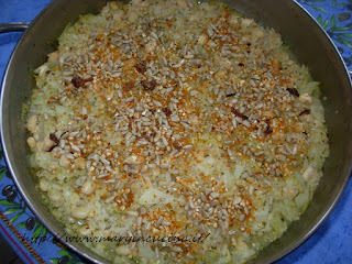 Cuocere il riso per 30 minuti coperto d’acqua. Nel frattempo tagliare la verza sottilmente eliminando le parti più dure. Unire anche la verza al riso e coprire con altra acqua. Proseguire la cottura per altri 30 minuti. A fine cottura aggiungere i fagioli cannellini precotti, sale ed un filo d’olio. Spolverizzare con i semini e pomodori e carote essiccate ed infornare a 180° per 10 – 15 minuti.