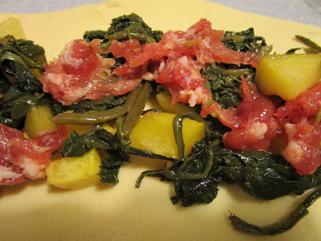 - 300 gr. di bietoline già lessate passate in padella con un pò d’olio d’oliva e uno spicchio d’aglio