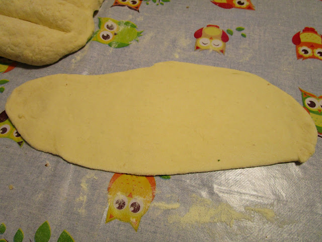 - dividere l’impasto in porzioni da 80 gr. e stendere ogni porzione come da foto