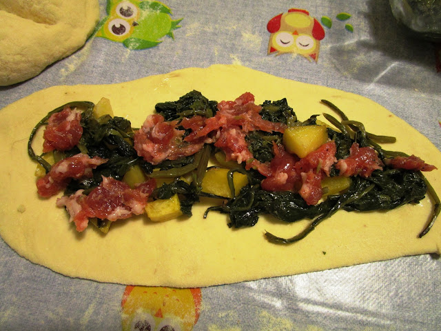 - avvolgere la farcia e arrotolare su se stesso l’impasto farcito