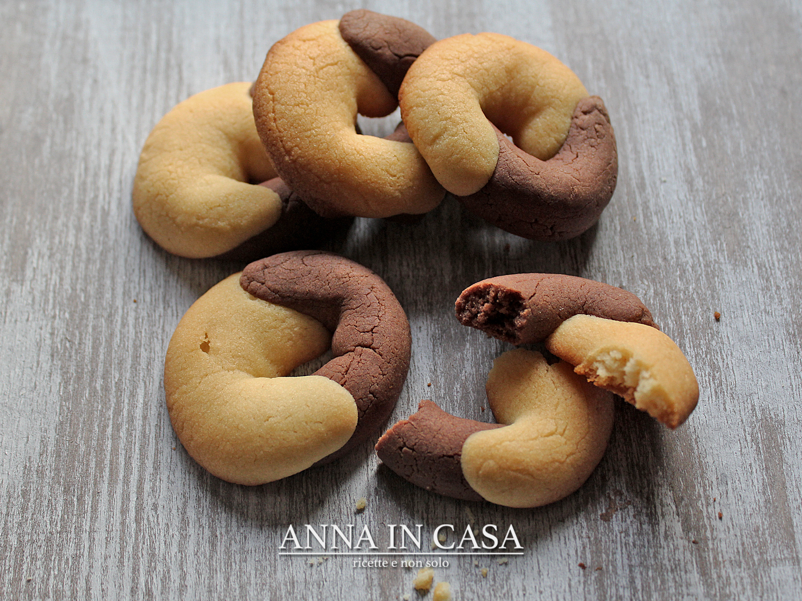 Dai due impasti ricavare dei rotolini che mano a mano utilizzerete per formare i biscotti, unendo una parte al cioccolato e una alla vaniglia.
