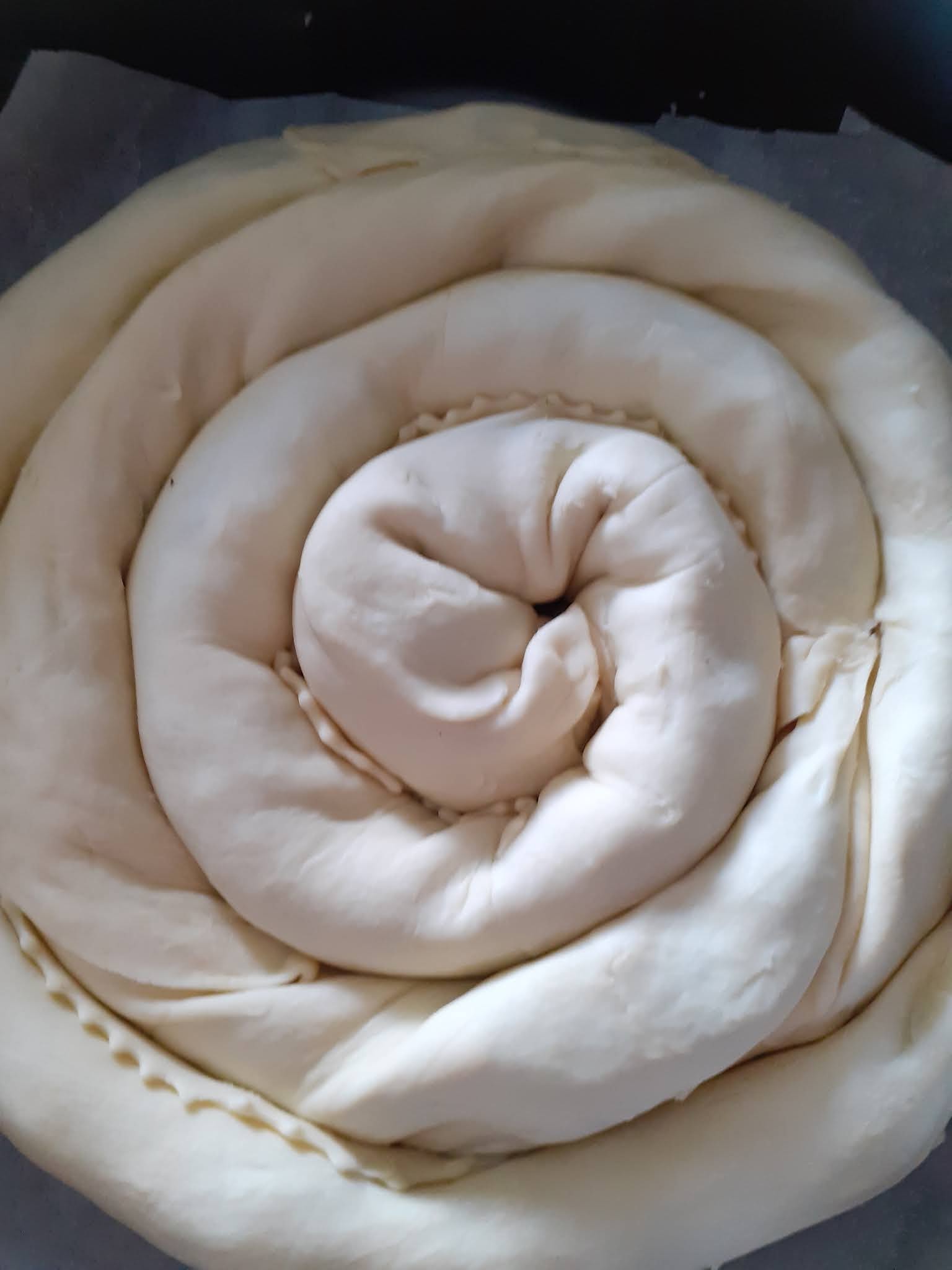 In una padella ,lasciamo dorare la cipolla in poco olio,versiamo gli spinaci,saliamo copriamo lasciamo cuocere giusto il tempo di appassire gli spinaci,uniamo il tofu spezzettato,diamo una mescolata e lasciamo raffreddare.Stendiamo sottile la sfoglia mettiamo la farcia e avvolgiamo come un cannolo,iniziamo a metterli in una teglia dal centro,avvolgendolo stretto ,continuiamo tutto intorno formando una spirale che pennelleremo con poca acqua e olio e decoreremo con semi di sesamo e papaveri!In forno per cca 30′ a 180°!