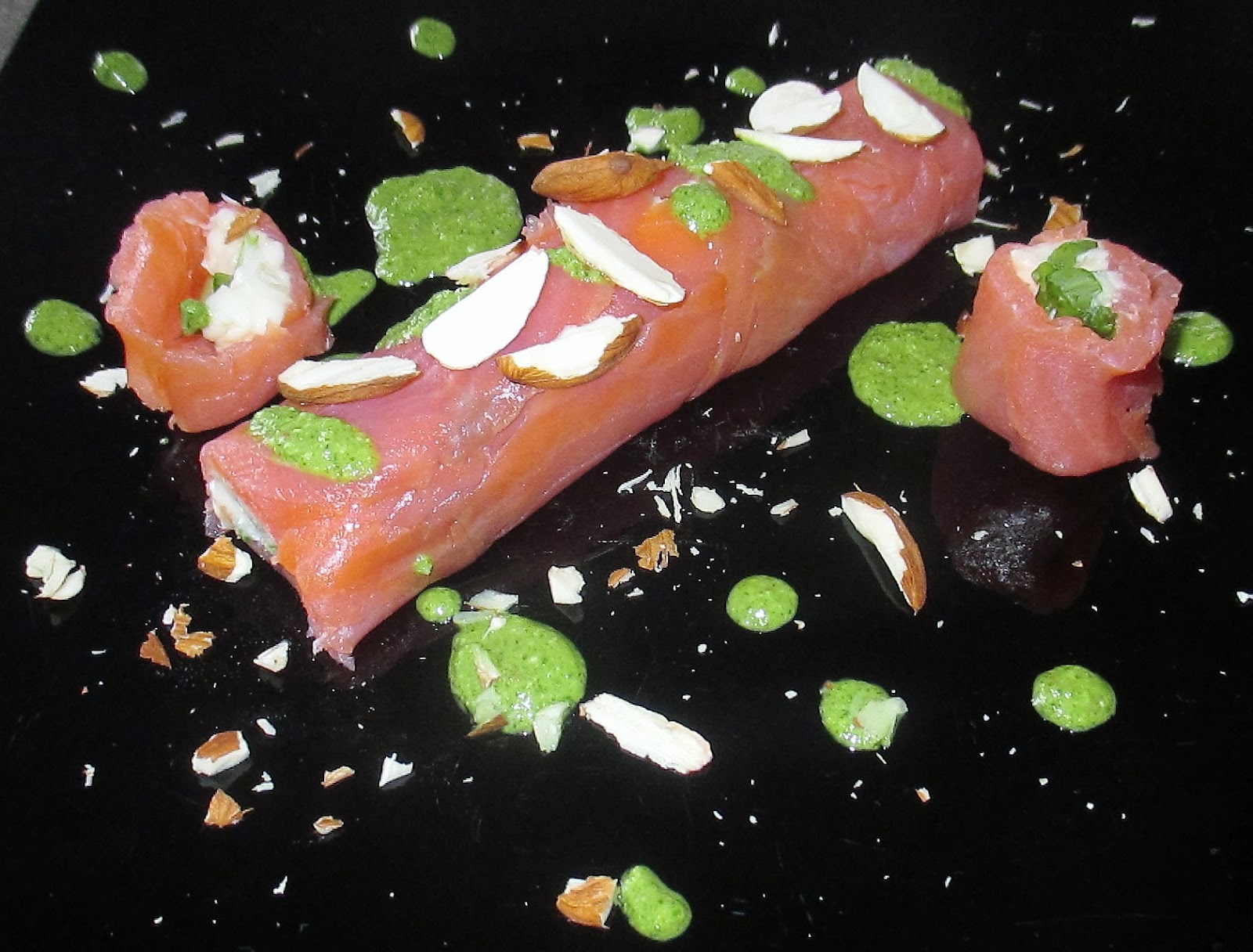 Préparer les rouleaux de truite en plaçant le même sur un plan. La battre, en faisant attention à ne pas casser les tissus. Arroser de jus de citron. Ensuite, placez sur gorgonzola et roquette comme on le voit sur les photos. Fermez l’ensemble très soigneusement pressé et puis réfrigérer pour durcir pendant environ 1 heure.