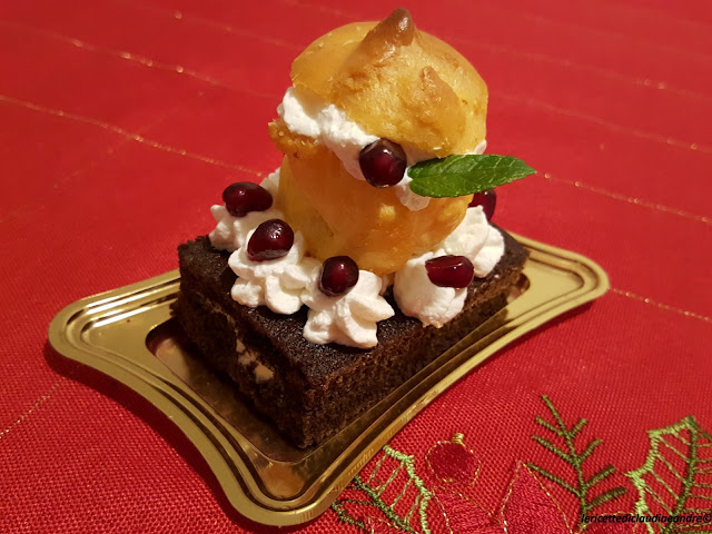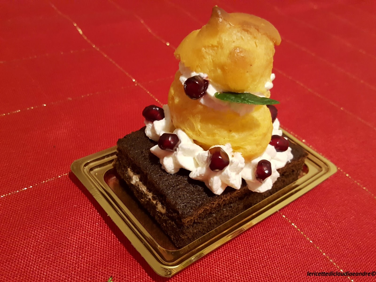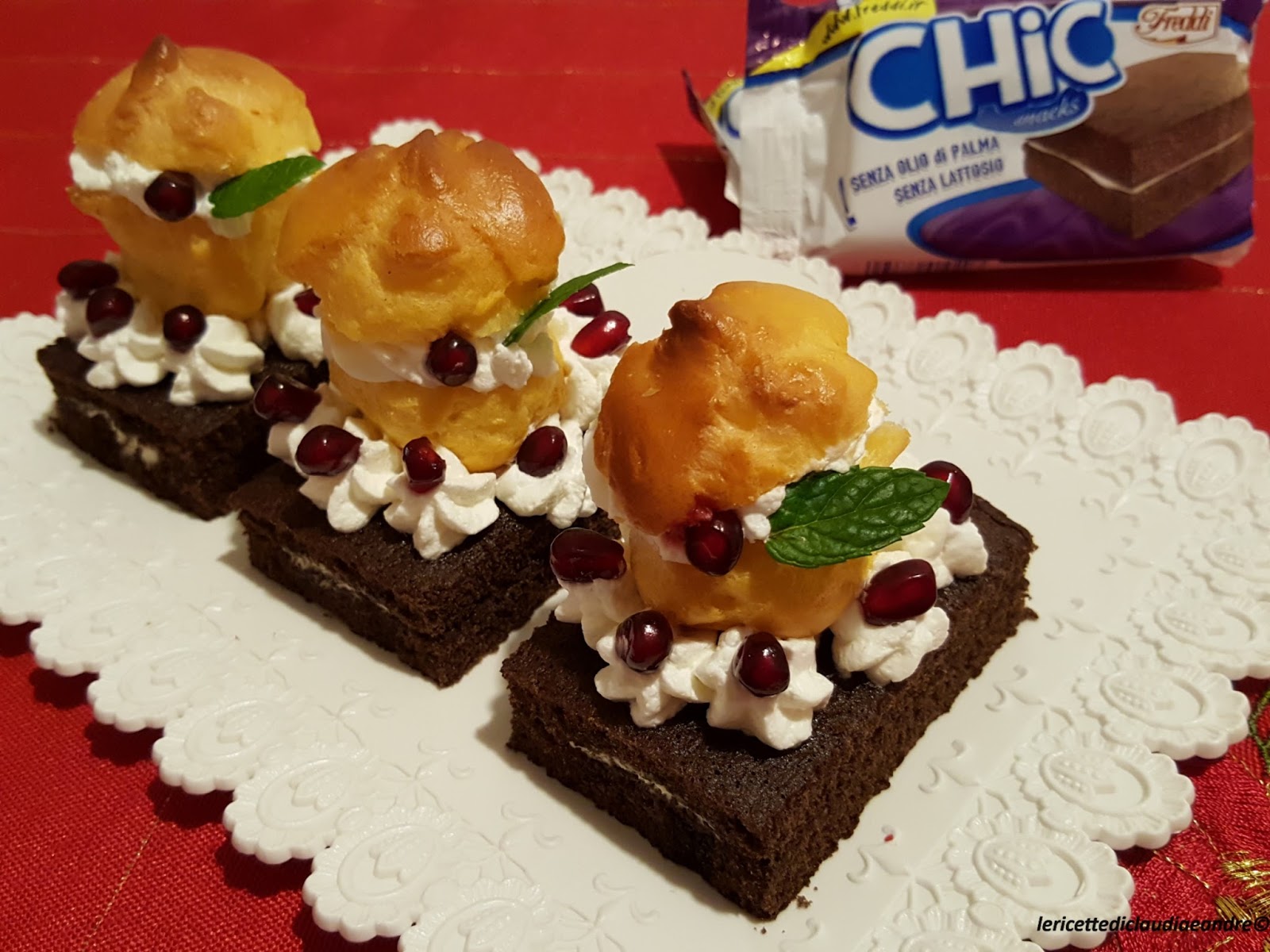 - Decorare tutto attorno alla bigne con dei ciuffetti di panna, con dei chicchi di melagrana e con una piccola fogliolina di menta.